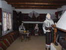 Pereţii sunt acoperiţi cu ţesături decorative din lână. Lăicerele sunt înguste şi ornamentate cu dungi policrome, în tonuri potolite sau cu vrâste şi alesături geometrice sau florale. Cea mai frumoasă dintre textilele de interior, care se aşeza pe perete, în dreptul patului, este scoarţa, pe care se desfăşurau adevărate compoziţii ornamentale cu flori, păsări, pomi, roate. Deasupra patului, prinsă de grinzi, având şi rol decorativ, era culmea pe care erau aşezate piese de port pentru zilele de sărbătoare. La capătul patului se aşeza lada cu zestre - simbolul femeii măritate - realizată din fag, stejar sau frasin, adesea fiind decorată cu brazi, stilizaţi, ghivece de flori şi cu rozete. Din locuinţa tradiţională nu lipsea icoana, deasupra căreia se prindea cel mai frumos ştergar.